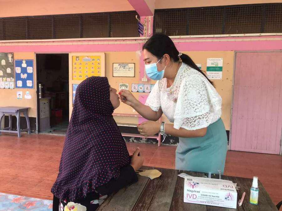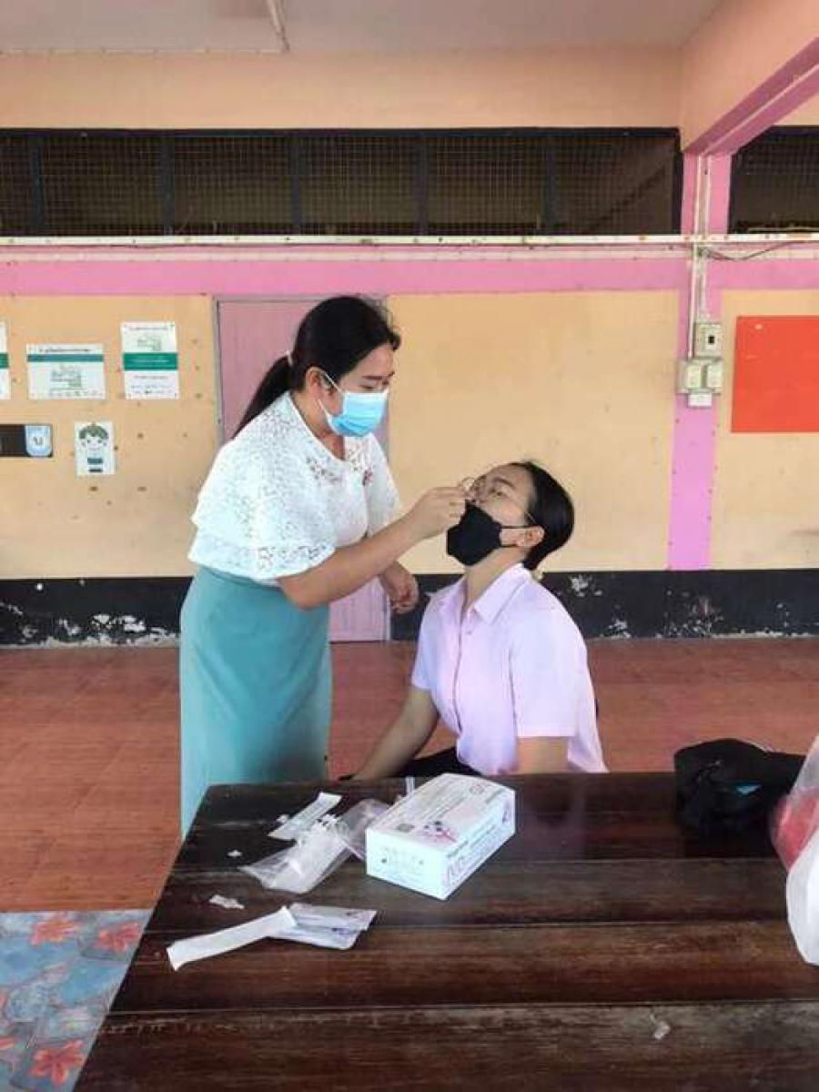 คณะครู และบุคลากรทางการศึกษาได้ทำการตรวจ ATK ก่อนเข้าทำงานวันแรก