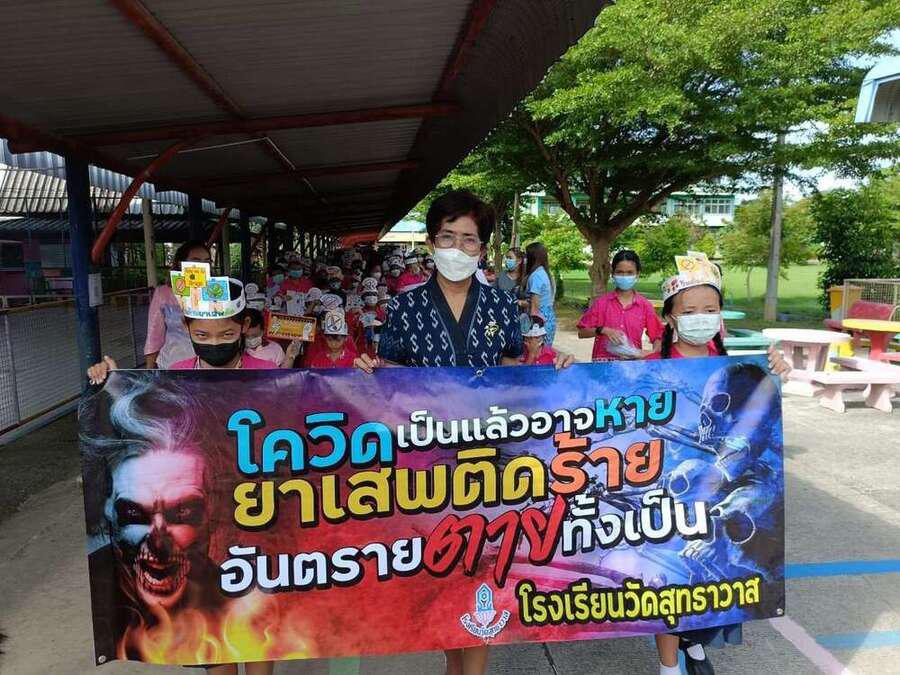 วันศุกร์ที่ 24 เดือนมิถุนายน พ.ศ. 2565 โรงเรียนวัดสุทธาวาสได้จัดกิจกรรมวันต่อต้านยาเสพติดโลก เพื่อรณรงค์ให้นักเรียนและชุมชนตระหนักและเห็นความสำคัญ ของการต่อต้านยาเสพติด ซึ่งยาเสพติดบ่อนทำลายประเทศชาติ และเยาวชน โดยมี นางสาวลัดดา ผาดไพบูลย์ รักษาการในตำแหน่งผู้อำนวยการโรงเรียน เป็นประธานในพิธี กิจกรรมประกอบไปด้วยการกล่าวคำปฎิญาณตน ต่อต้านยาเสพติด การเดินรณรงค์ต่อต้าน ยาเสพติดในชุมชน กิจกรรมการแข่งขันระบายสีภาพ ต่อต้านยาเสพติด ฯลฯ โดยกิจกรรมต่างๆ ประสบความสำเร็จลุล่วงไปได้ด้วยดี S:0