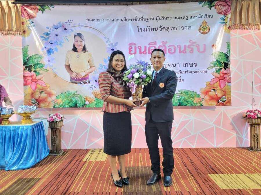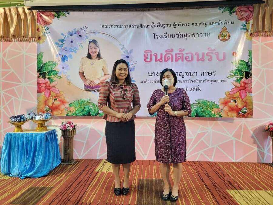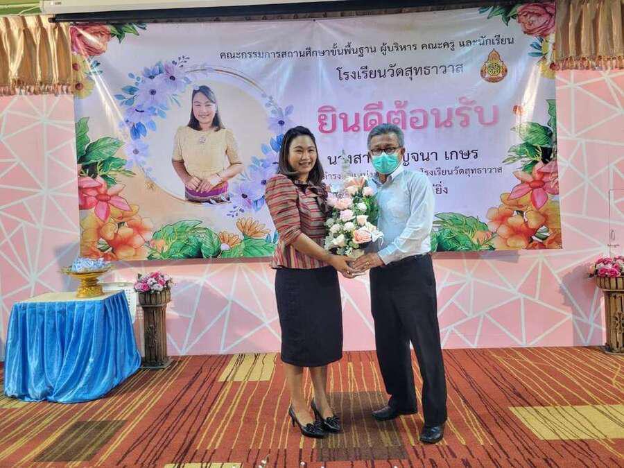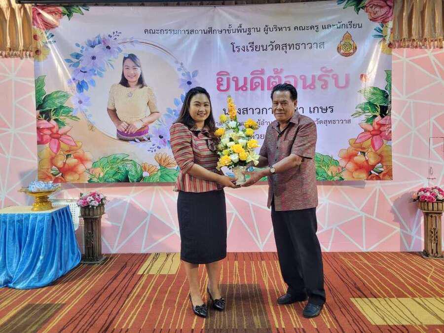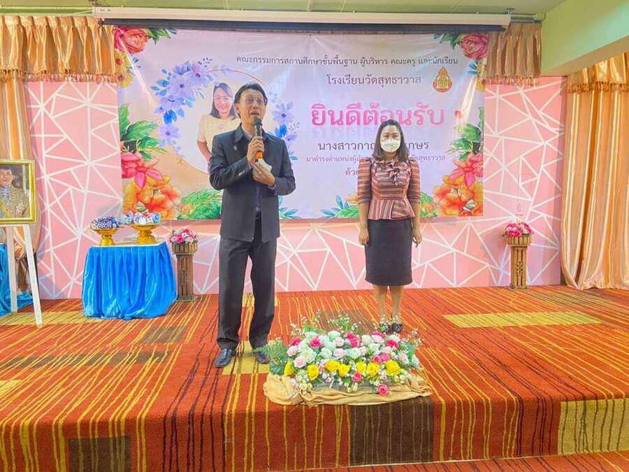 ต้อนรับ นางสาวกาญจนา เกษร ในโอกาสย้ายมาดำรงตำแหน่งผู้อำนวยการโรงเรียนวัดสุทธาวาส