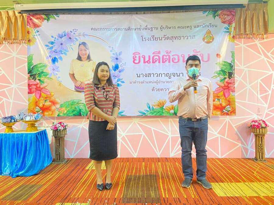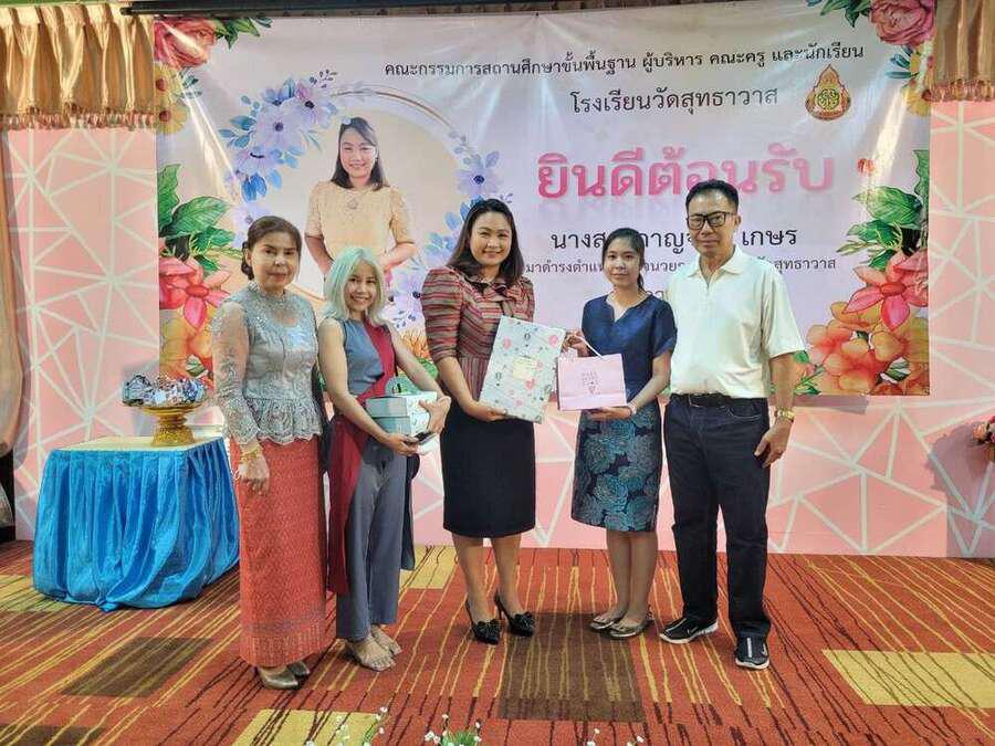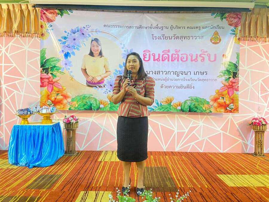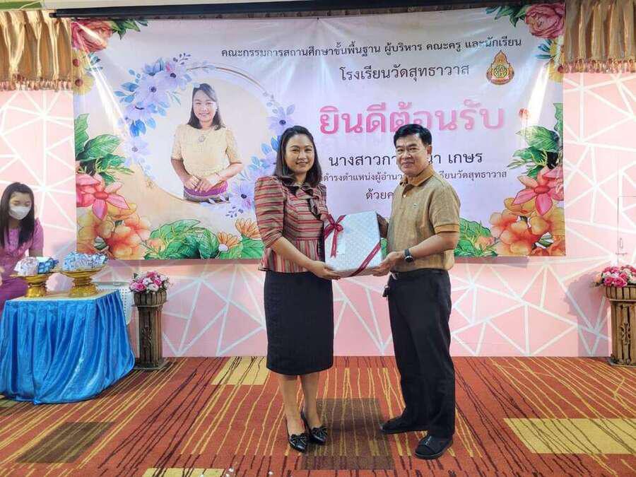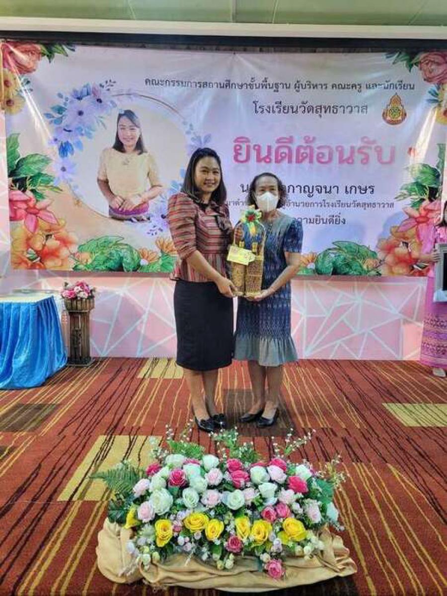 ต้อนรับ นางสาวกาญจนา เกษร ในโอกาสย้ายมาดำรงตำแหน่งผู้อำนวยการโรงเรียนวัดสุทธาวาส