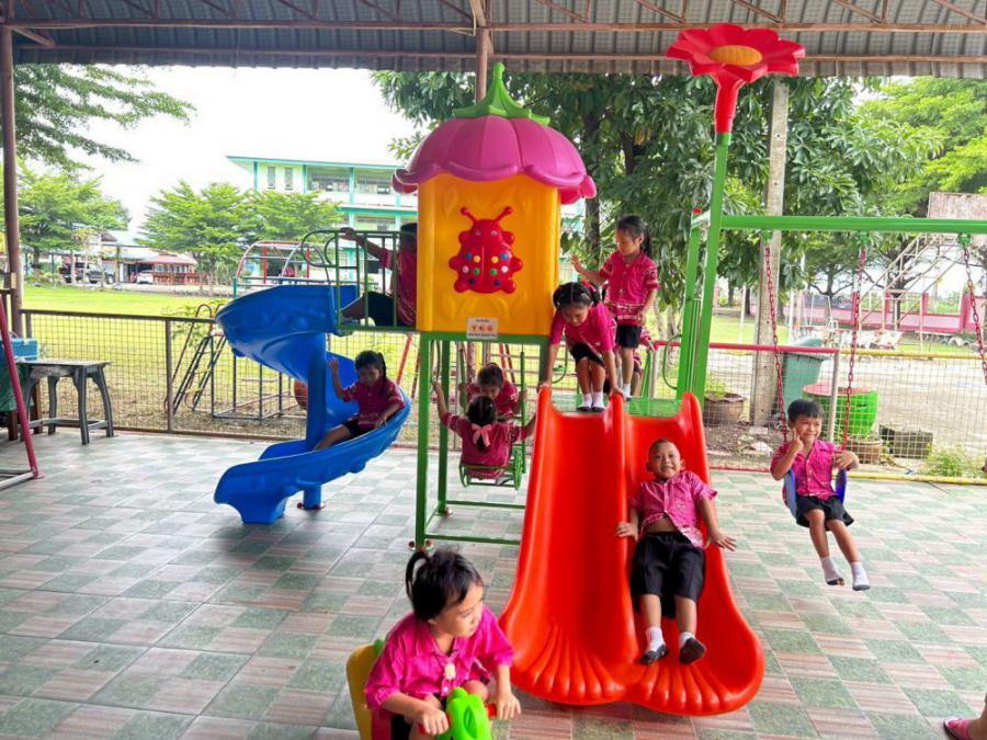 บริษัท ไทยก้าวไกลกรุ๊ป จำกัดได้มอบ เครื่องเล่นสนามกลางแจ้ง