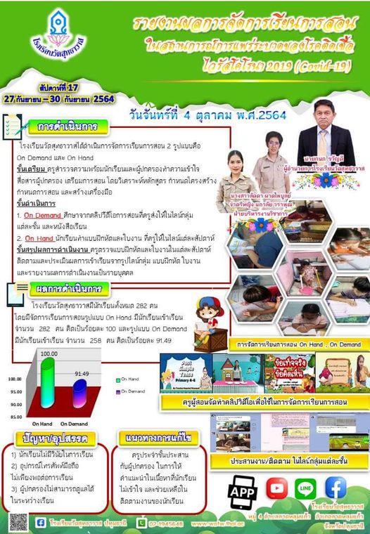 รายงานผลการจัดการเรียนการสอนในสถานการณ์การแพร่ระบาดของโรคติดเชื้อไวรัสโคโรนา 2019 ( COVID-19) สัปดาห์ที่ 17