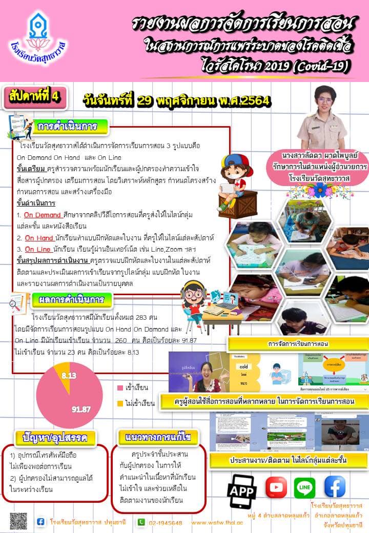 รายงานผลการจัดการเรียนการสอนในสถานการณ์การแพร่ระบาดของโรคติดเชื้อไวรัสโคโรนา 2019 (COVID-19)สัปดาห์ที่ 4
