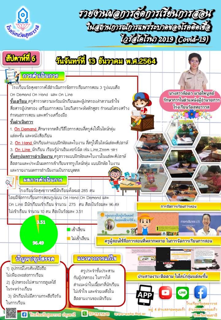 รายงานผลการจัดการเรียนการสอนในสถานการณ์การแพร่ระบาดของโรคติดเชื้อไวรัสโคโรนา 2019 (COVID-19) ภาคเรียนที่ 2 สัปดาห์ที่ 6
