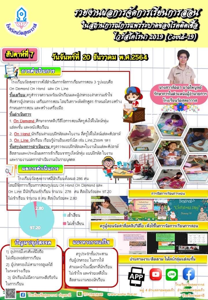 รายผลการจัดการเรียนการสอนในสถานการณ์การแพร่ระบาดของโรคติดเชื้อไวรัสโคโรนา 2019 (COVID-19)ภาคเรียนที่ 2 สัปดาห์ที่ 7