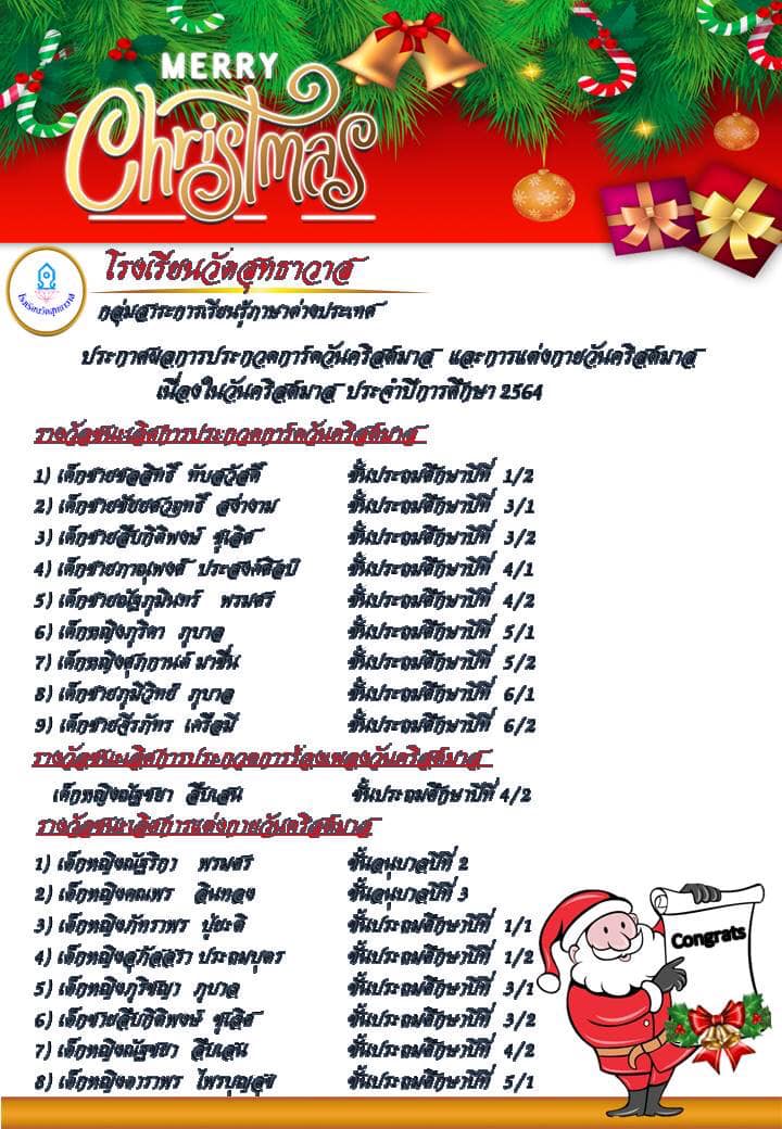 ได้จัดกิจกรรมวันคริสต์มาสออนไลน์โดยให้นักเรียนประกวดการแต่งกาย,การร้องเพลง,และทำการ์ดวันคริสต์มาส เพื่อส่งเสริมให้นักเรียนรู้จักวัฒนธรรมสากลของต่างชาติ ทั้งนี้คณะครูและนักเรียนได้ให้ความร่วมมือในการทำกิจกรรมเป็นอย่างดี
