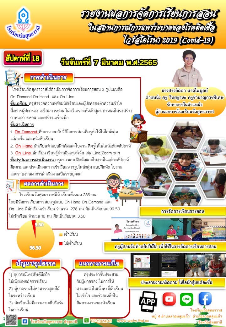รายงานผลการจัดการเรียนการสอนในสถานการณ์ การแพร่ระบาดของโรคติดเชื้อไวรัสโคโรนา 2019 (COVID-19)ภาคเรียนที่ 2 สัปดาห์ที่ 18