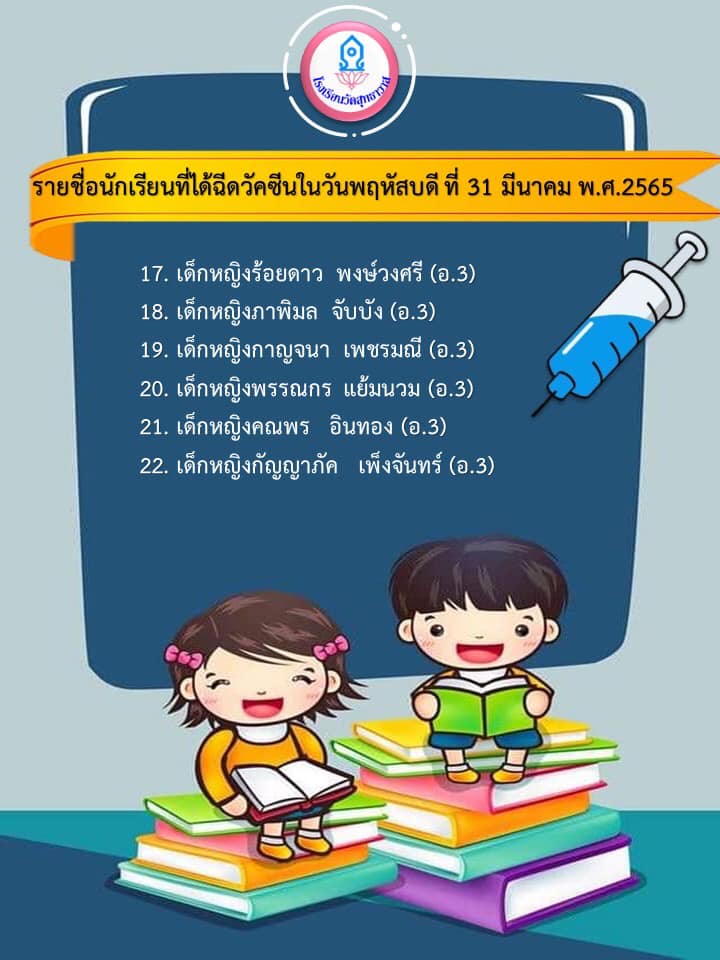 รายชื่อนักเรียนที่ได้รับการฉีดวัคซีนสำหรับนักเรียนชั้นอนุบาลปีที่ 2, 3