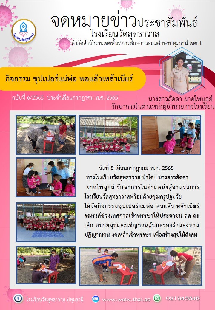 วันที่ 8 กรกฎาคม พ.ศ. 2565 ทางโรงเรียนวัดสุทธาวาส นำโดยนางสาวลัดดา ผาดไพบูลย์ รักษาการในตำแหน่งผู้อำนวยการโรงเรียนวัดสุทธาวาส พร้อมด้วยคุณครูปฐมวัยได้จัดกิจกรรม