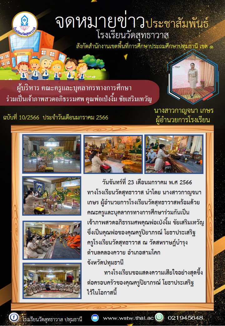 วันจันทร์ที่ 23 มกราคม พ.ศ 2566 ทางโรงเรียนวัดสุทธาวาส นำโดย นางสาวกาญจนา