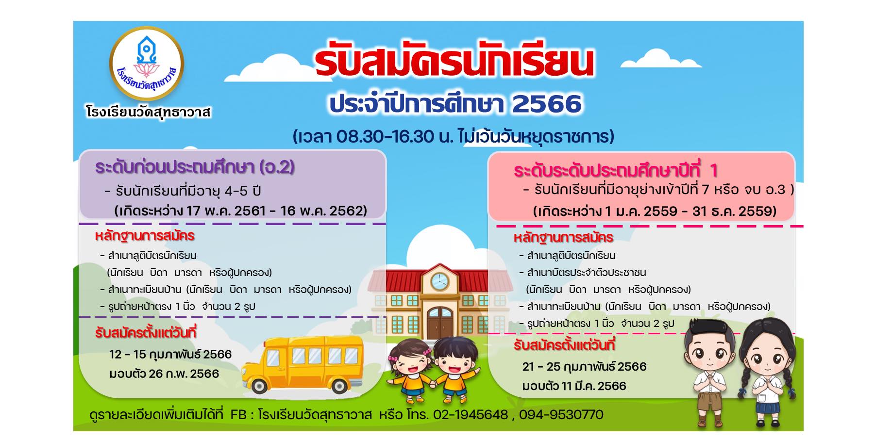 **รับนักเรียนที่มีอายุ 4 - 5 ปี (เกิดระหว่าง 17 พฤษภาคม 2561-16 พฤษภาคม 2562)