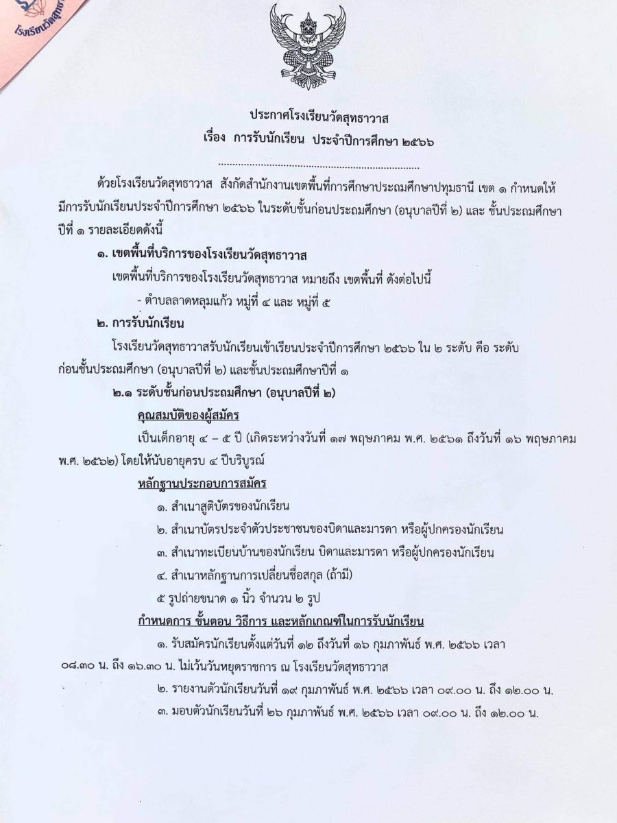 ประกาศรับสมัครนักเรียน