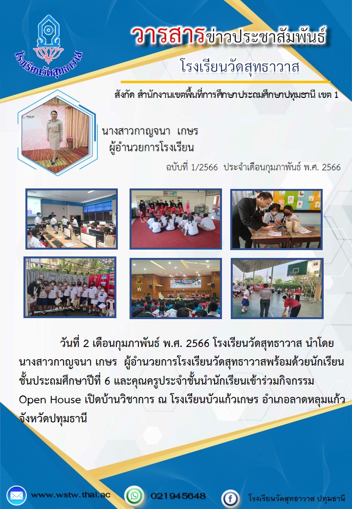 วันที่ 2 เดือนกุมภาพันธ์ พ.ศ. 2566 โรงเรียนวัดสุทธาวาส นำโดยนางสาวกาญจนา เกษร ผู้อำนวยการโรงเรียนวัดสุทธาวาสพร้อมด้วยนักเรียนชั้นประถมศึกษาปีที่ 6