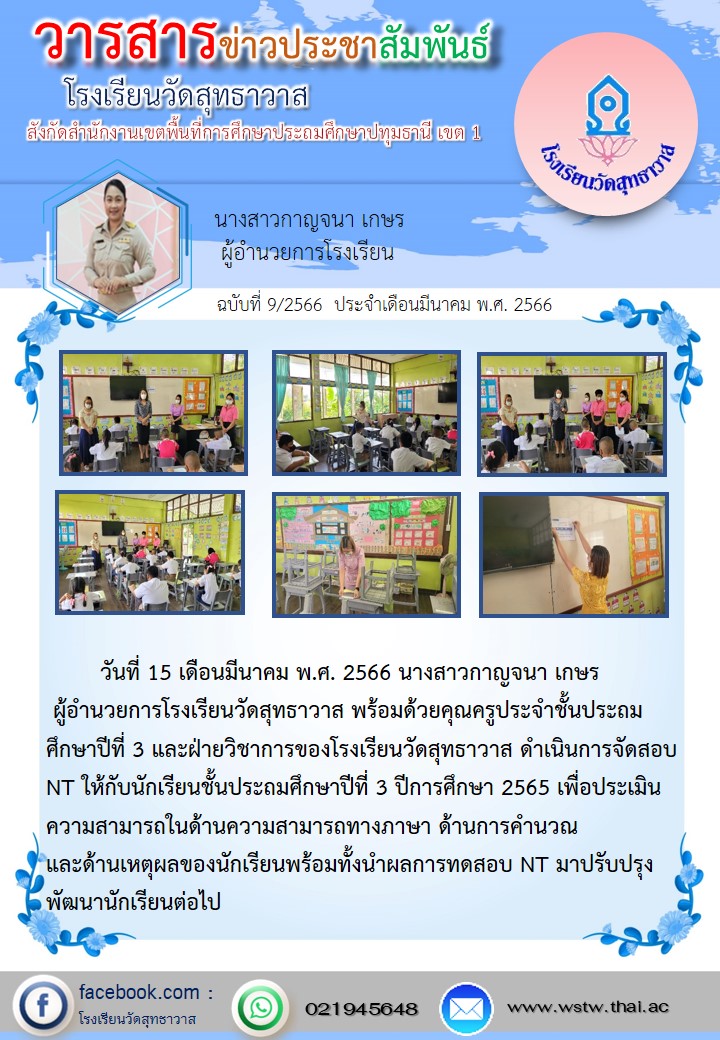 วันที่ 15 เดือนมีนาคม พ.ศ. 2566 นางสาวกาญจนา เกษร ผู้อำนวยการโรงเรียนวัดสุทธาวาส พร้อมด้วยคุณครูประจำชั้น