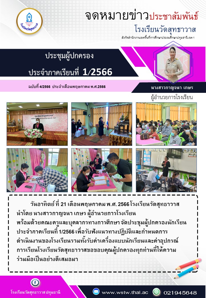 ประจำภาคเรียนที่ 1/2566 เพื่อรับฟังแนวทางปฏิบัติและกำหนดการดำเนินงานของโรงเรียนรวมทั้งรับค่าเครื่องแบบนักเรียนและค่าอุปกรณ์ การเรียนโรงเรียนวัดสุทธาวาสขอขอบคุณผู้ปกครองทุกท่านที่ให้ความร่วมมือเป็นอย่างดีเสมอมา