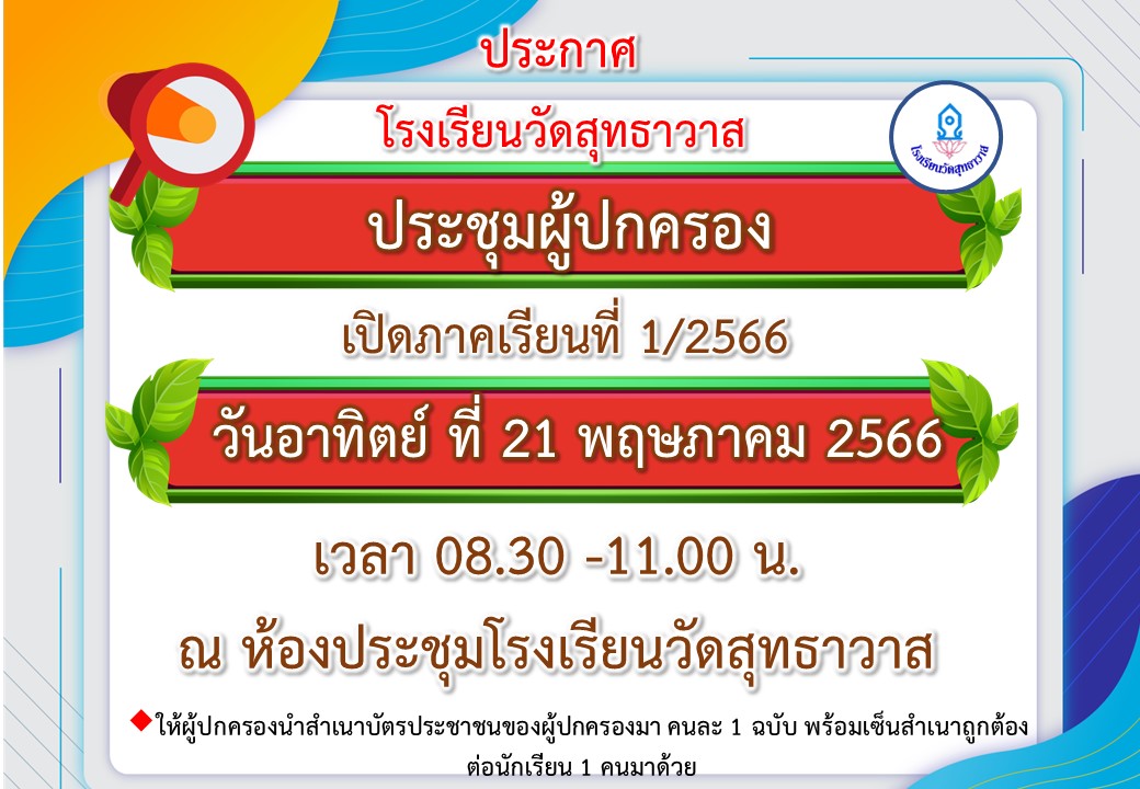 แจ้งกำหนดการจัดประชุม ผู้ปกครองนักเรียนประจำภาคเรียนที่ 1/2566