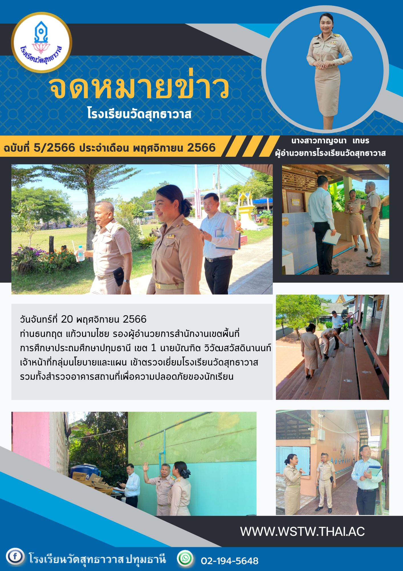 ตรวจเยี่ยมโรงเรียนวัดสุทธาวาส รวมทั้งสำรวจอาคารสถานที่เพื่อความปลอดภัยของนักเรียน