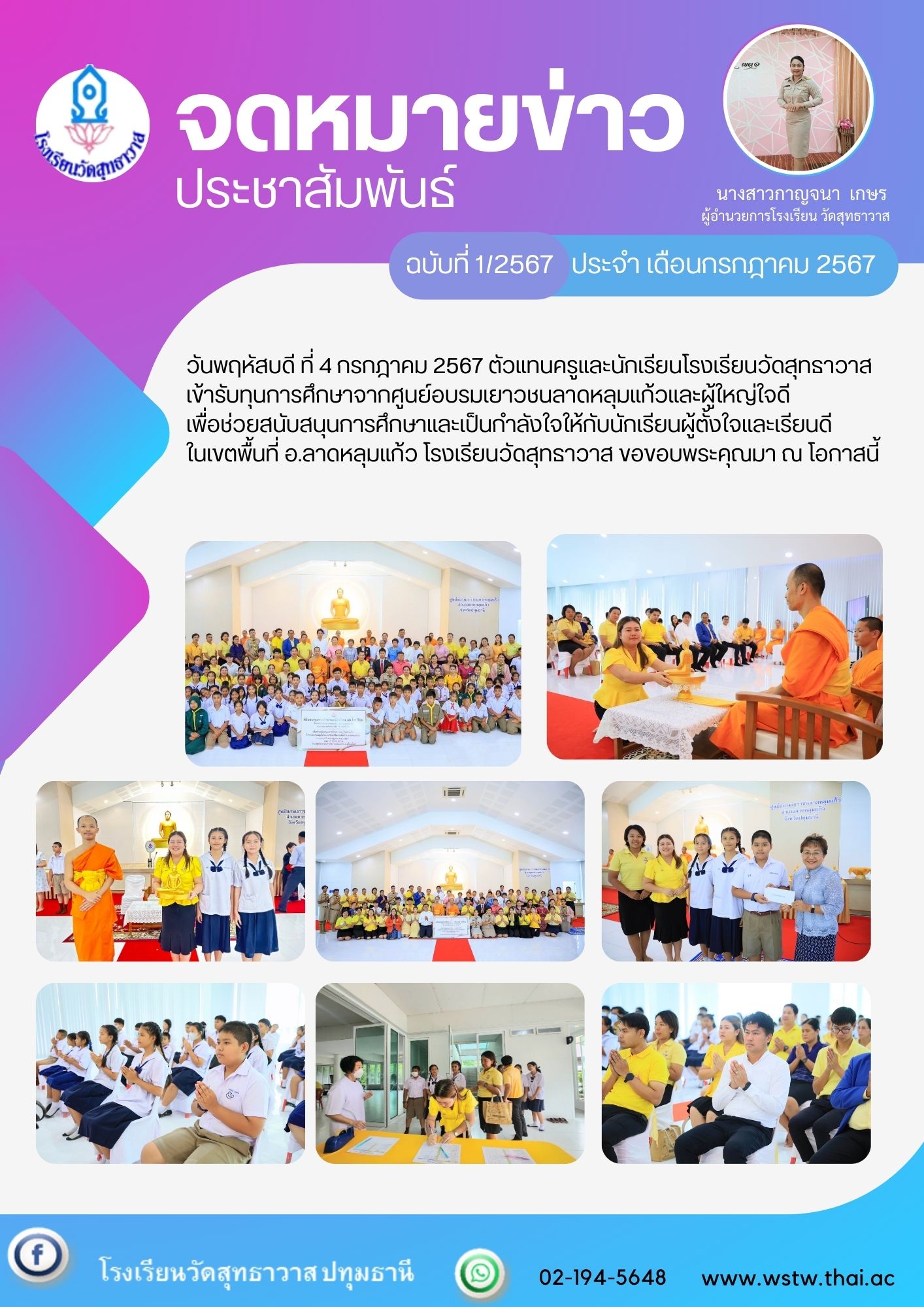 วันพฤหัสบดี ที่ 4 กรกฎาคม 2567 ตัวแทนครูและนักเรียนโรงเรียนวัดสุทธาวาส
