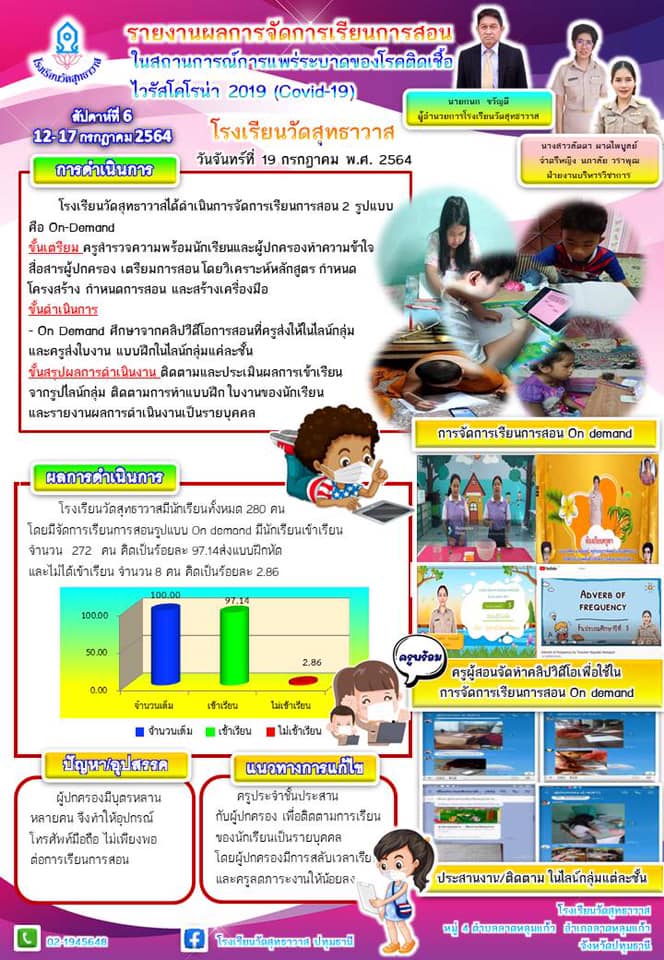 รายงานผลการจัดการเรียนการสอนในช่วงสถานการณ์การแพร่ระบาดของโรคติดเชื้อไวรัสโคโรนา 2019 สัปดาห์ที่ 6