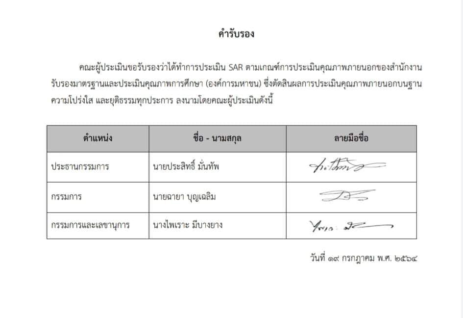 รายงานการประเมินคุณภาพภายนอก : ผลการประเมิน SAR ภายใต้สถานการณ์โควิด-19