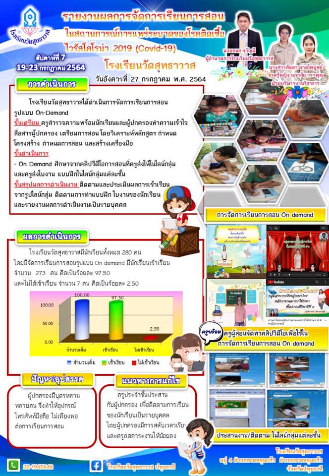 รายงานผลการจัดการเรียนการสอนในสถานการณ์การแพร่ระบาดของโรคติดเชื้อไวรัสโคโรนา 2019 (COVID-19) สัปดาห์ที่ 7
