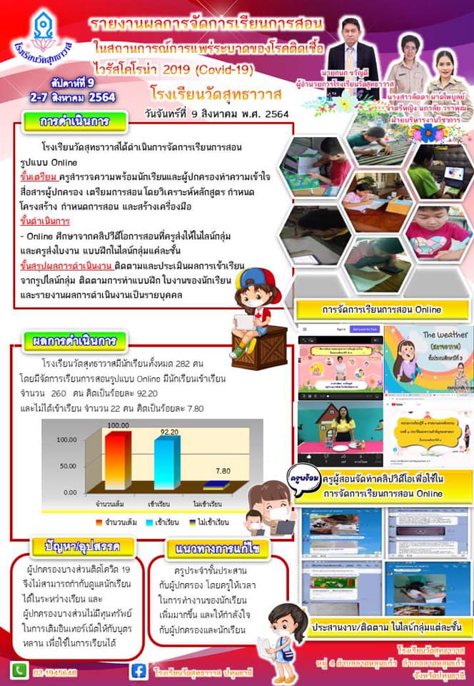 รายงานการจัดการเรียนการสอนในสถานการณ์การแพร่ระบาดของโรคติดเชื้อไวรัสโคโรนา 2019 (COVID-19) สัปดาห์ที่ 9