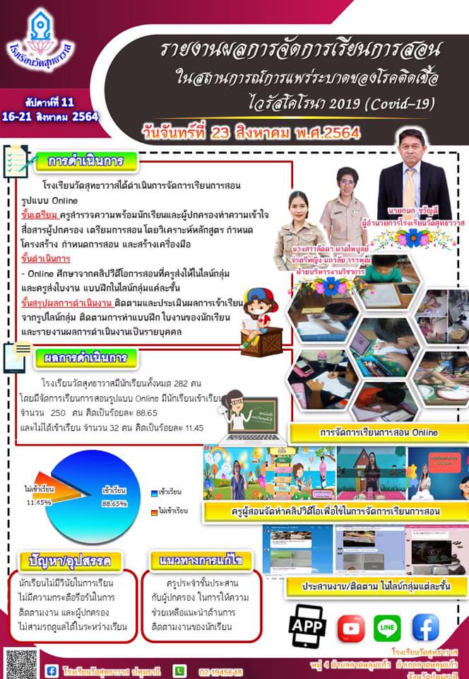 รายงานผลการจัดการเรียนการสอนในสถานการณ์การแพร่ระบาดของโรคติดเชื้อไวรัสโคโรนา 2019 (COVID-19) สัปดาห์ที่ 11