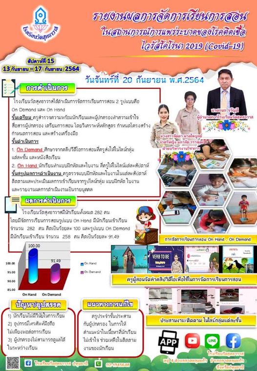รายงานการจัดการเรียนการสอนในสถานการณ์การแพร่ระบาดของโรคติดเชื้อไวรัสโคโรนา 2019 (COVID-19) สัปดาห์ที่ 15